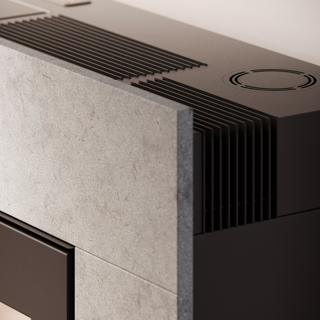 Un design minimaliste caractérise ce poêle canalisable aux nombreuses solutions d’installation. Les deux grilles de ventilation inférieures permettent une meilleure répartition de l’air dans les pièces de l’habitation. Disponible dans les puissances 12 et 14 kW.